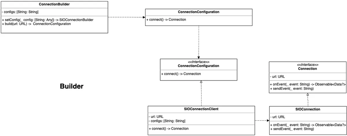 SIOConnectionBuilderis the builder forConnection, responsible for setting and storing data used during the construction of aConnection; theConnectionConfigurationabstract interface ensures that.connect()must be called before obtaining aConnectioninstance.