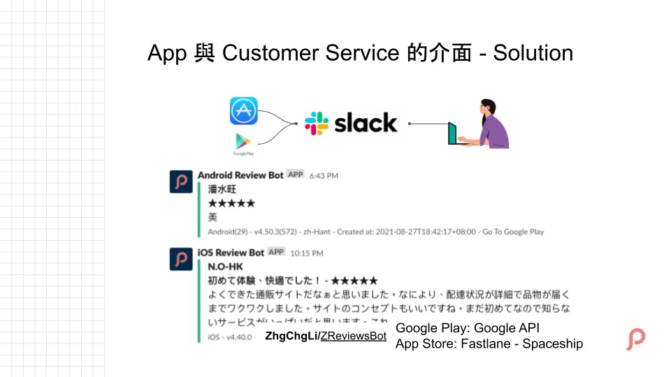 The best solution is to have store reviews automatically synced to our work platform. We can either pay for existing services or use the tools I developed: ZhgChgLi / ZReviewTender (new in 2022).