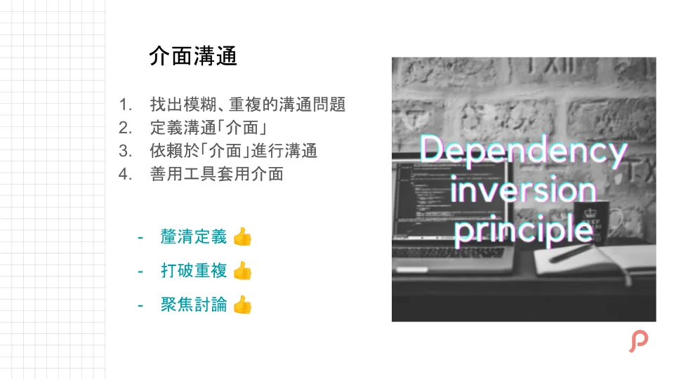 The idea introduced here is to communicate through a consensus interface, similar to the Dependency Inversion Principle in SOLID principles of object-oriented programming (it’s okay if you don’t understand this); the same concept can be applied in communication.