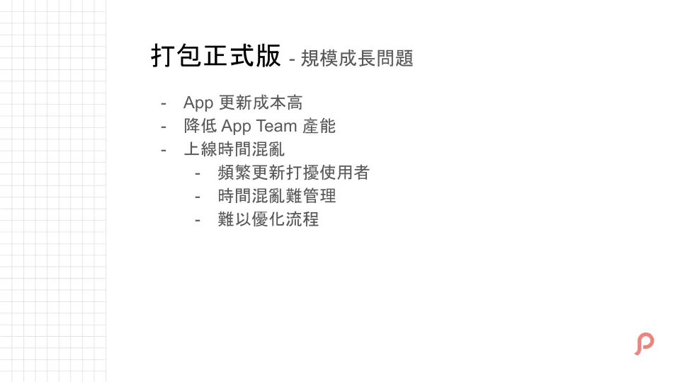 However, with a large team and multiple development and iteration demands running simultaneously, the situation shown in the above image occurs. Without proper “interface communication” as mentioned earlier, everyone works independently. This causes the App Team to be overwhelmed since app updates are more costly and complex than web updates. Additionally, frequent and chaotic updates disrupt the user experience.