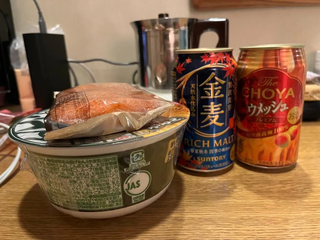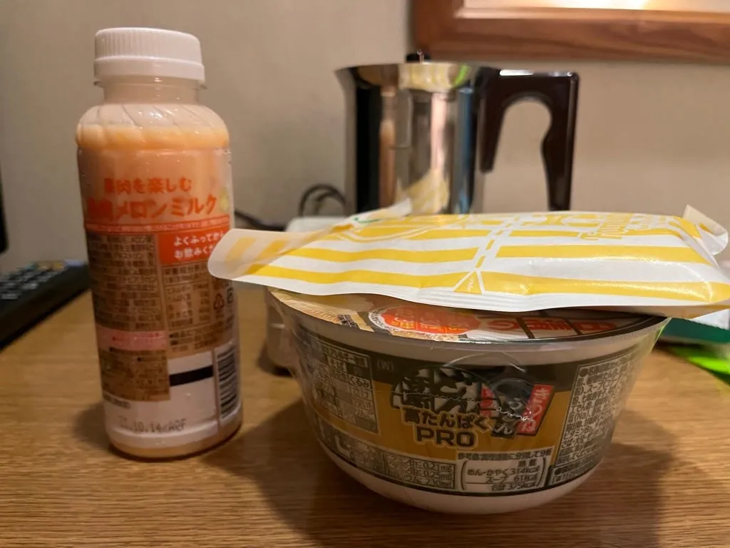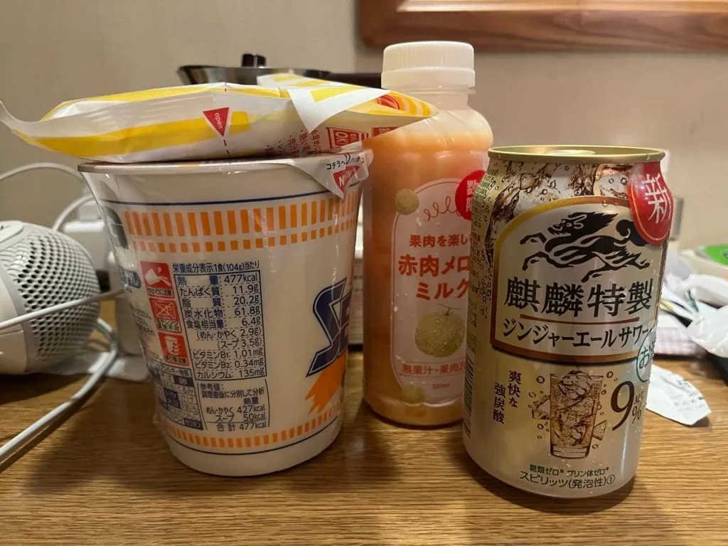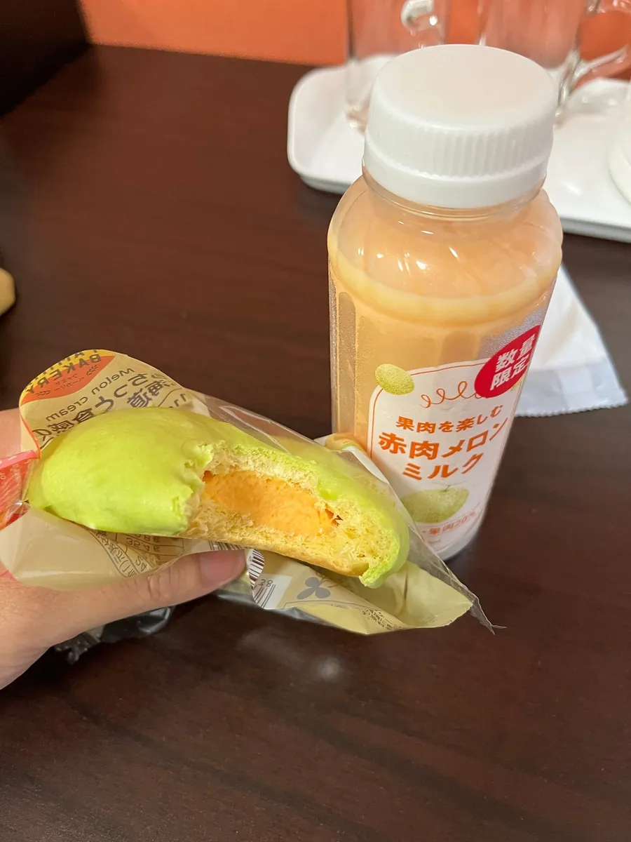 Also picked up breakfast for tomorrow morning (melon bread + juice). The family mart’s fruit juice with pulp (melon, strawberry, etc.) is really delicious. I almost always buy it when I see it. It has sweet fruit pulp inside and tastes great.