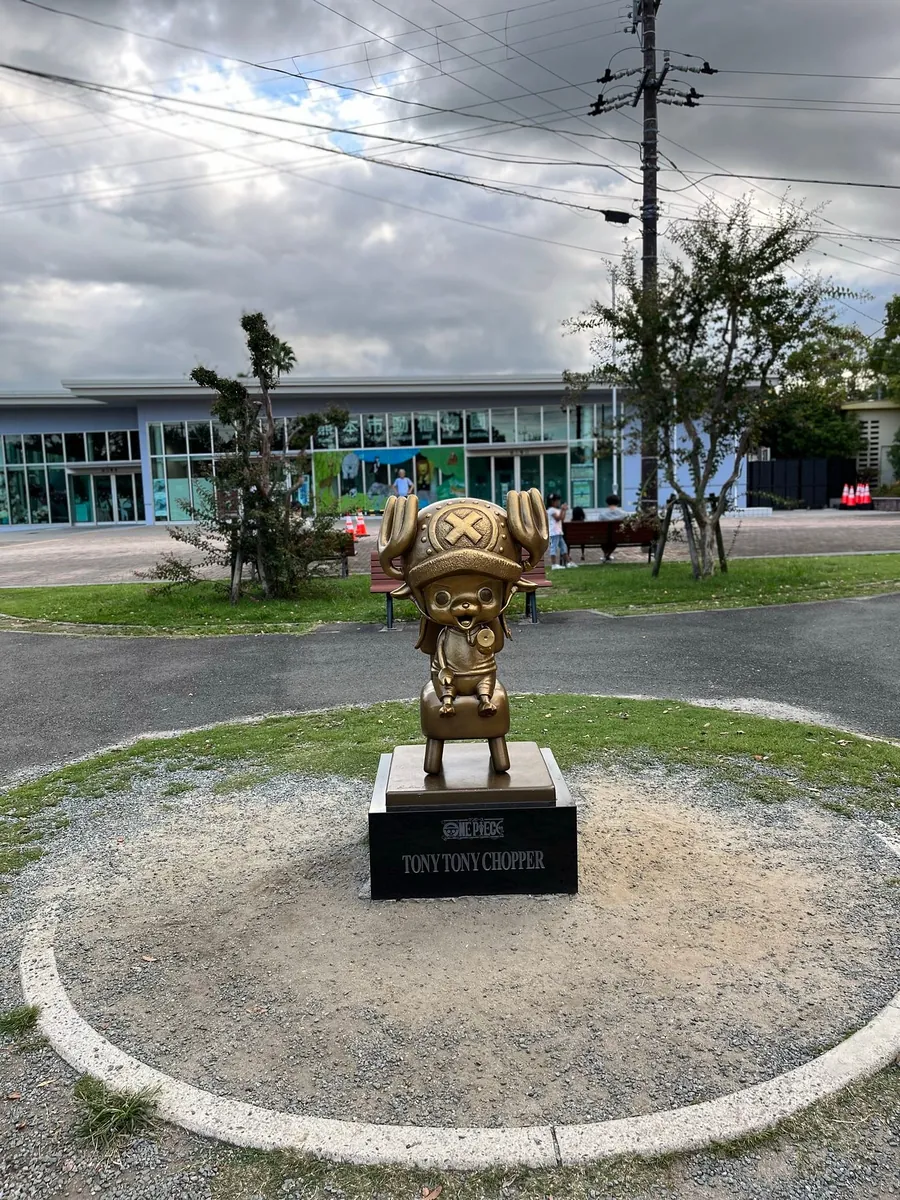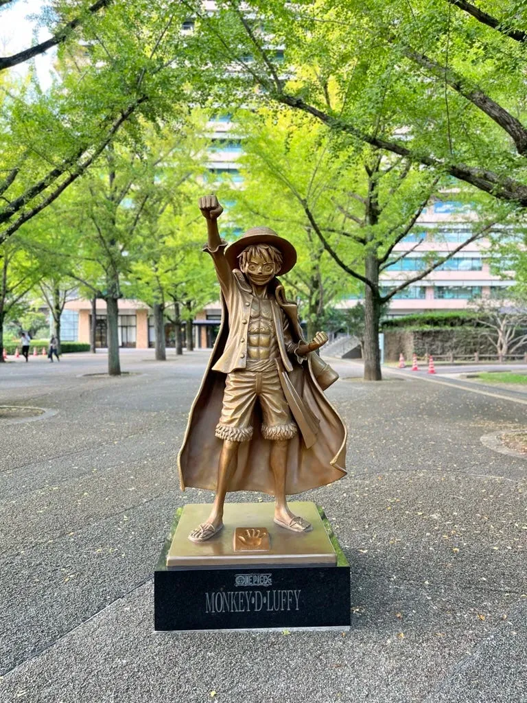 First, walk to the front of Kumamoto Prefectural Office and find the Luffy statue.