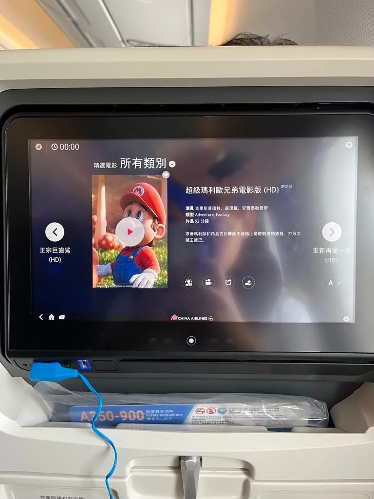 The return flight was newer, and they had the Super Mario Brothers movie. I finished watching just as we arrived in Taiwan. The seats weren’t fully occupied, so I had an entire row to myself—super comfortable!