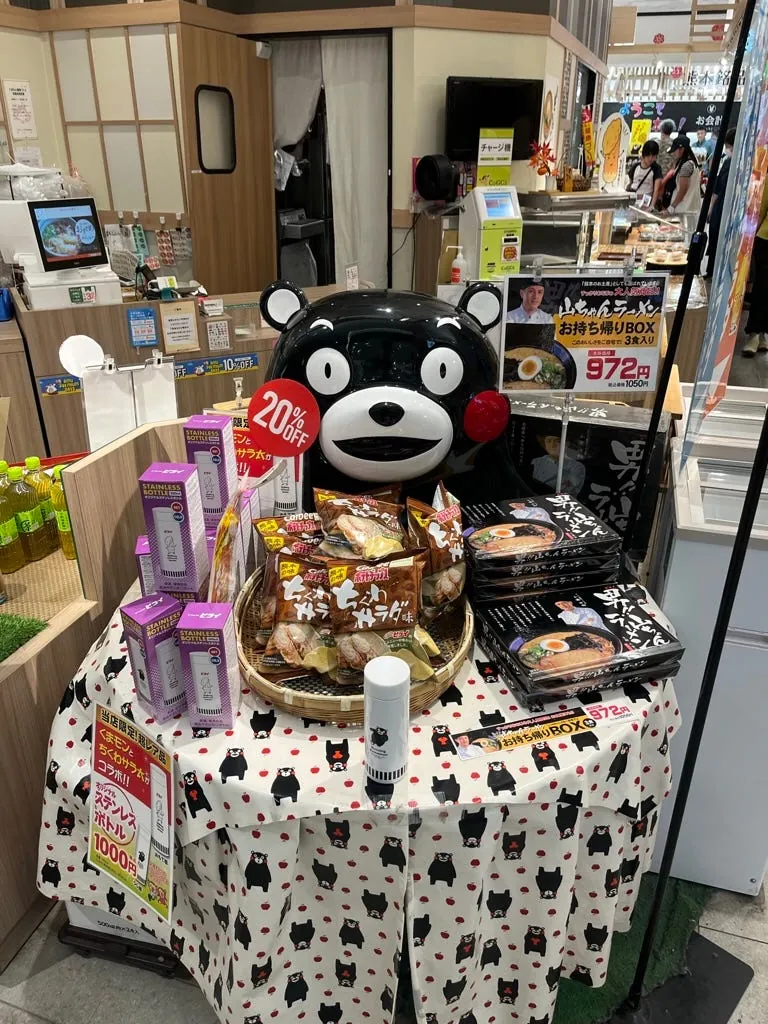 Kumamon, the Kumamoto mascot, can be found all over Kyushu (not just Kumamoto).