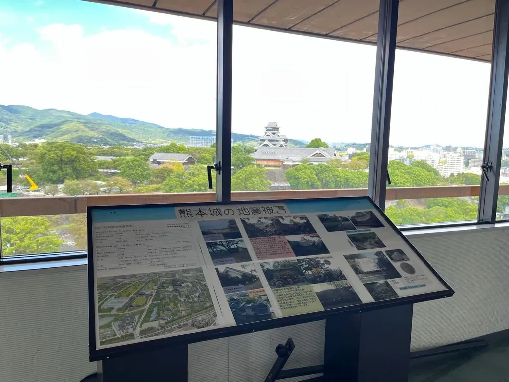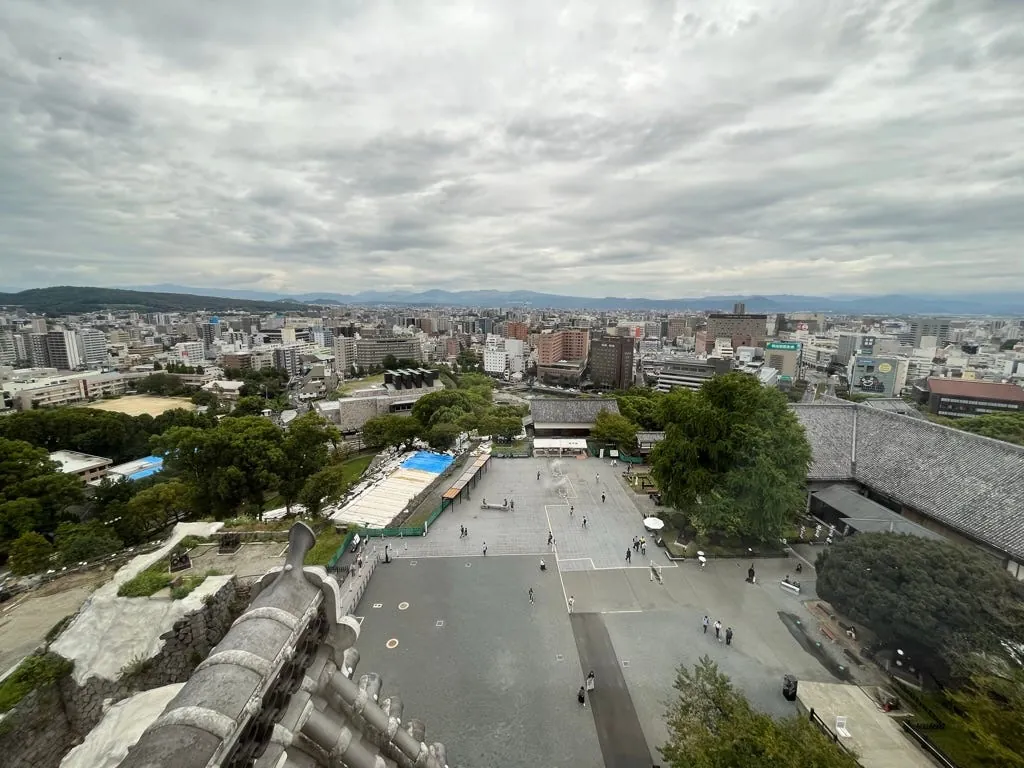 The 14th floor of Kumamoto City Hall offers a bird’s-eye view of the entire city of Kumamoto and Kumamoto Castle.