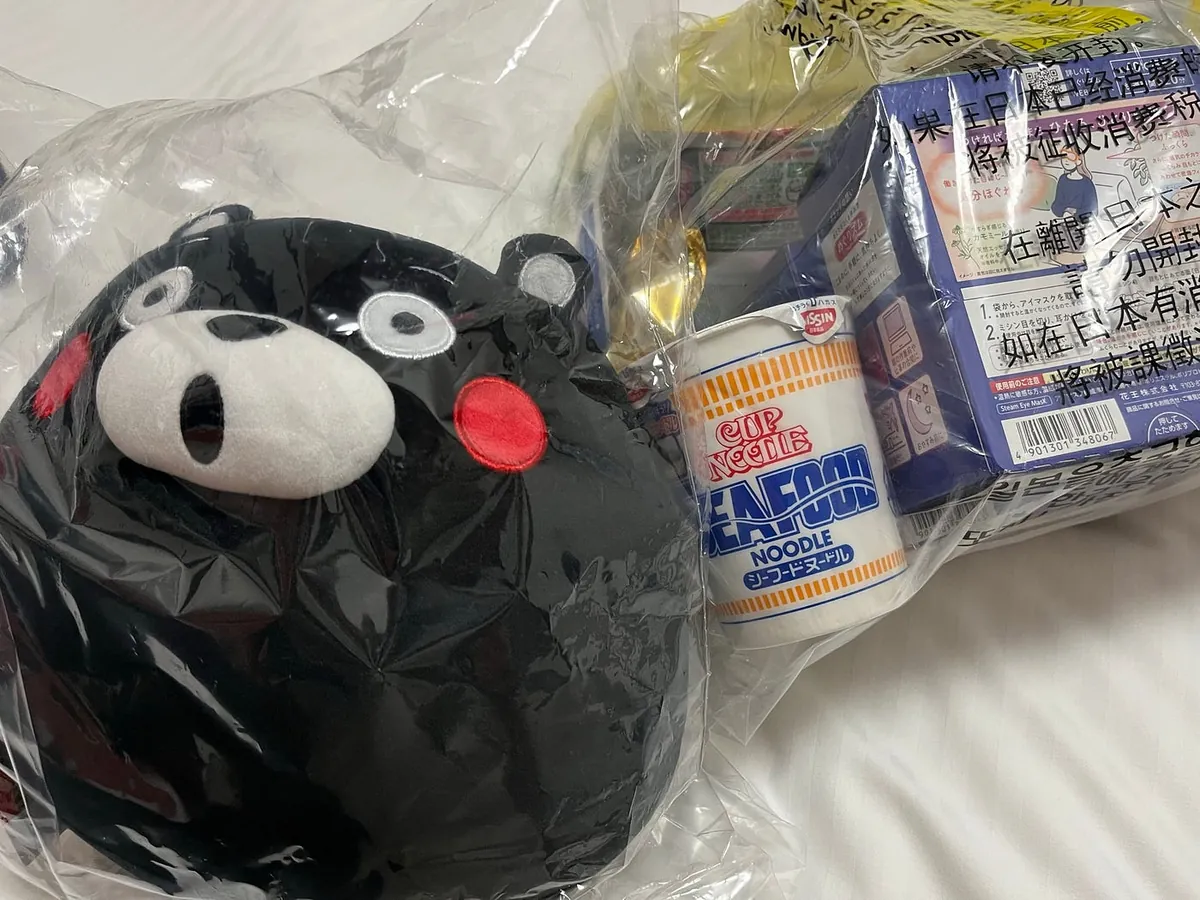 I met some cute elderly people from Kumamoto on the streetcar. They pointed at the Nissin instant noodles in a duty-free clear bag and said, “So good, right~”. I replied, “Good! Good@” Then I took out a Kumamon daifuku I just bought and said to the grandma, “Kawaii~”. She gave a thumbs-up and said, “Kawaii, arigato.” I then said, “私は台湾人です” (I am Taiwanese). The grandma seemed to greet me back (my Japanese is too poor to understand, but I caught something about energy). I responded politely and said goodbye to the elderly couple when I got off.