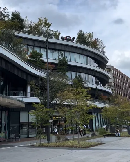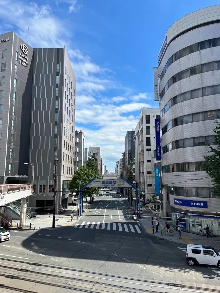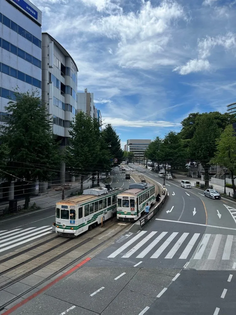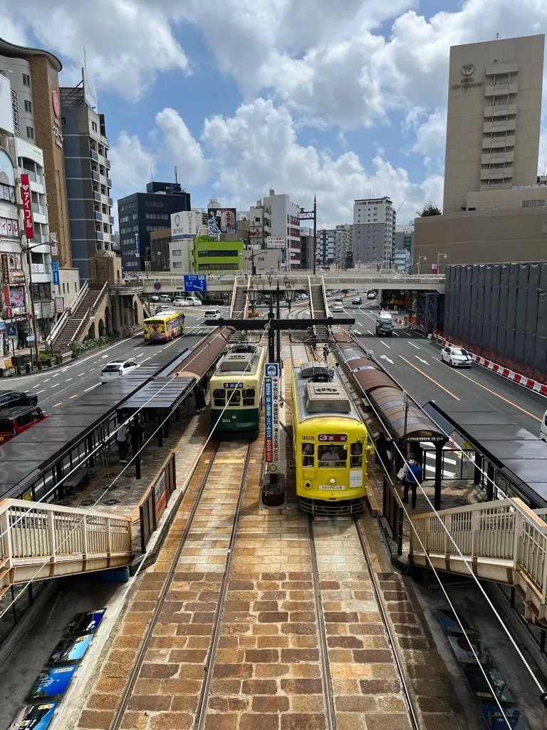 After leaving the City Hall, walk toward the Sakuramachi Shopping Center. You will pass a pedestrian bridge, which is a great spot for photos, especially of the Kumamoto tram.