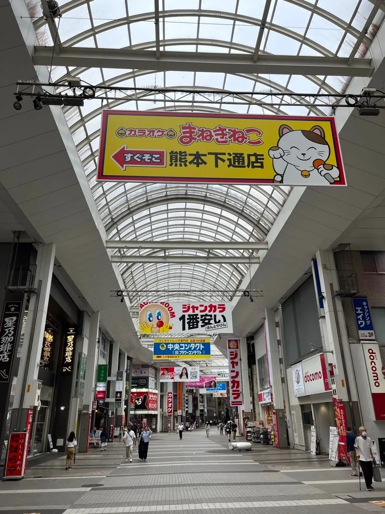 This intersection is Kumamoto Ginza Street. A few days ago, I mentioned that this area also has many free information centers.