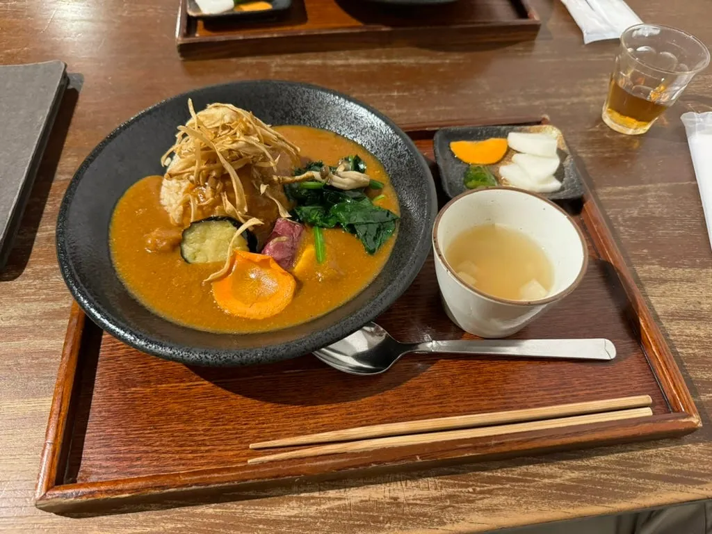 For lunch, I had the famous Miyake Shoten curry set. The rich curry paired well with shredded burdock and was very tasty.