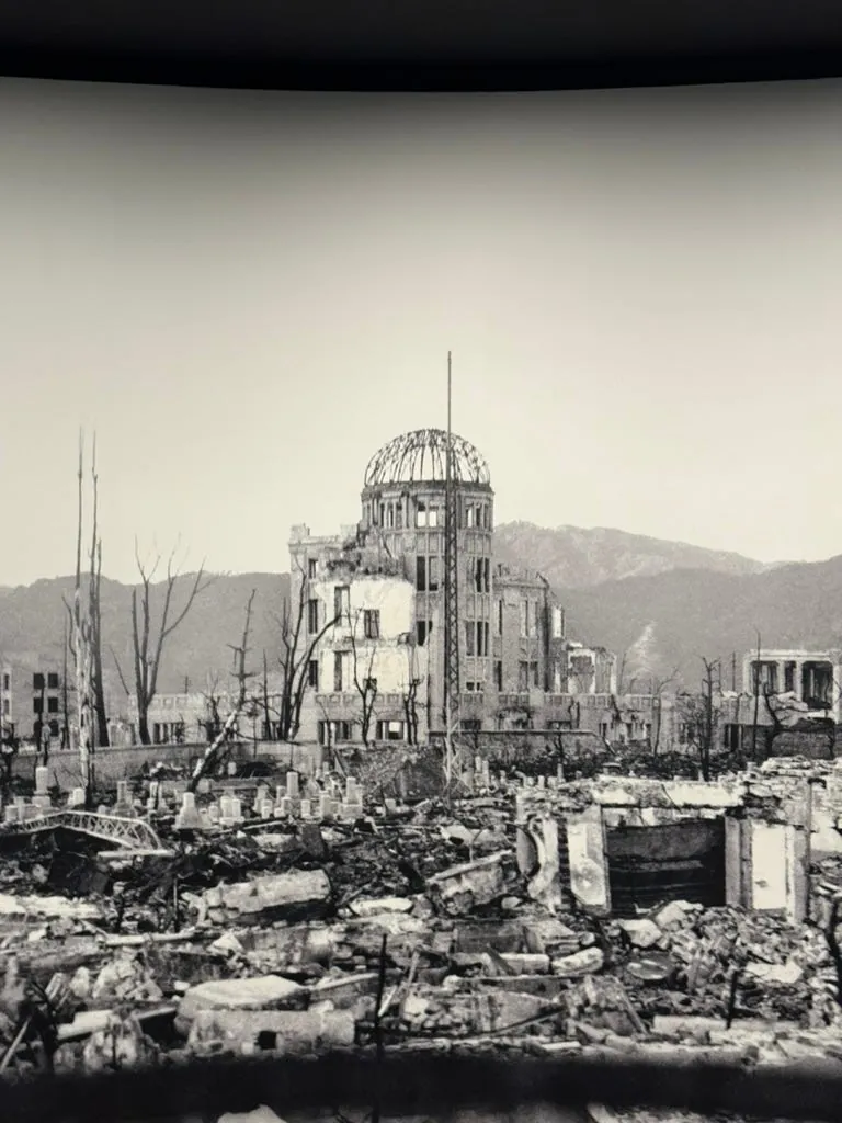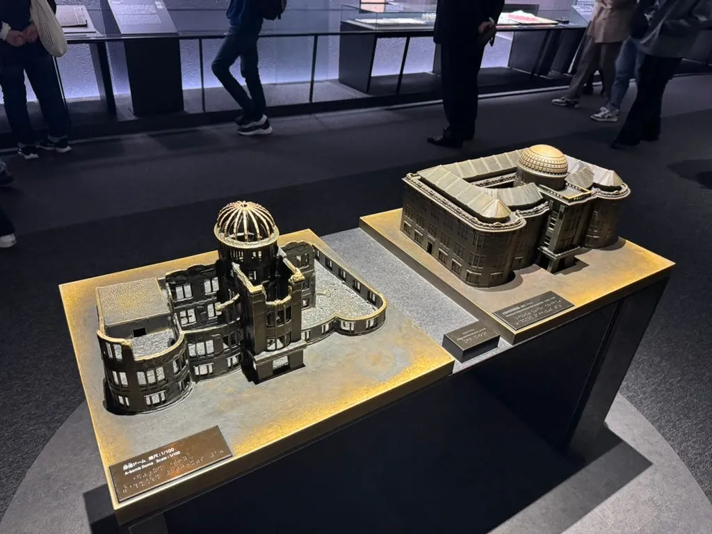 Queueing to buy tickets to visit the Peace Memorial Museum, which contains extensive information on the nuclear explosion process, history, as well as photos and artifacts; the overall visit is very heavy and impactful.
