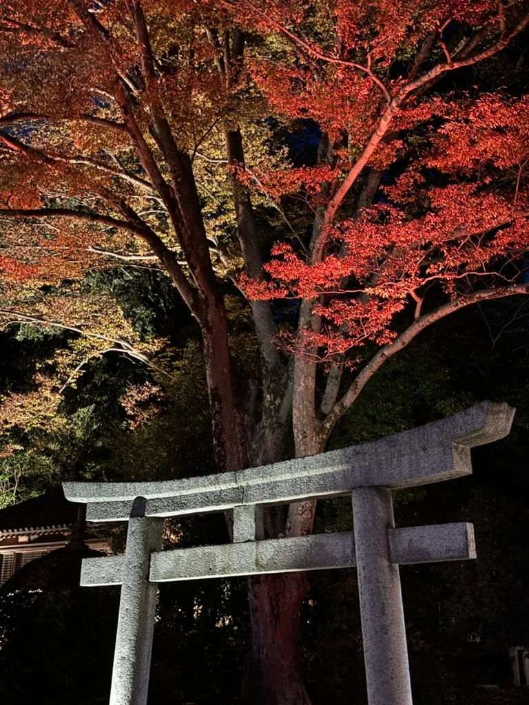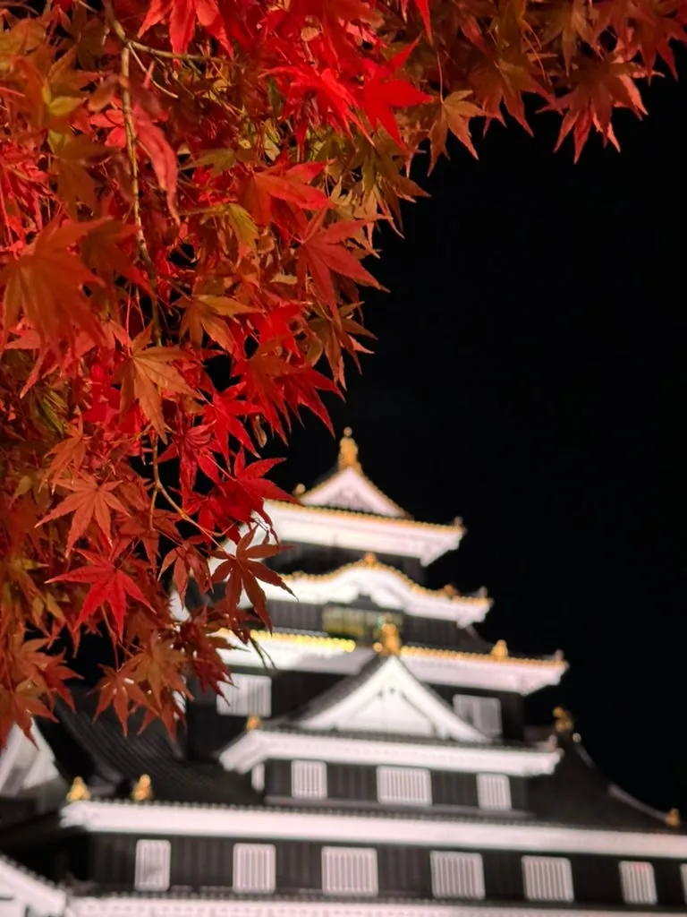 On the way, visit the nearby Okayama Castle to see the night view. The maple leaves illuminated by lights create a unique atmosphere.