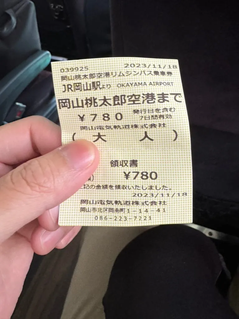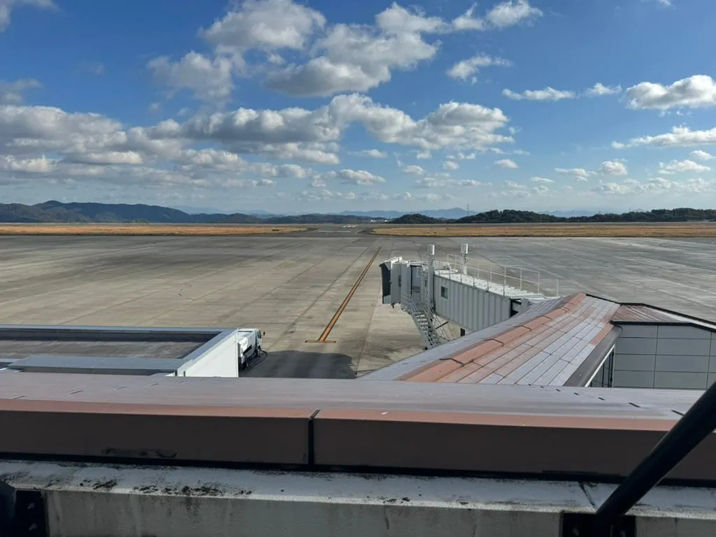Location: Okayama Airport also requires a shuttle bus, but the early arrival allows plenty of time.
