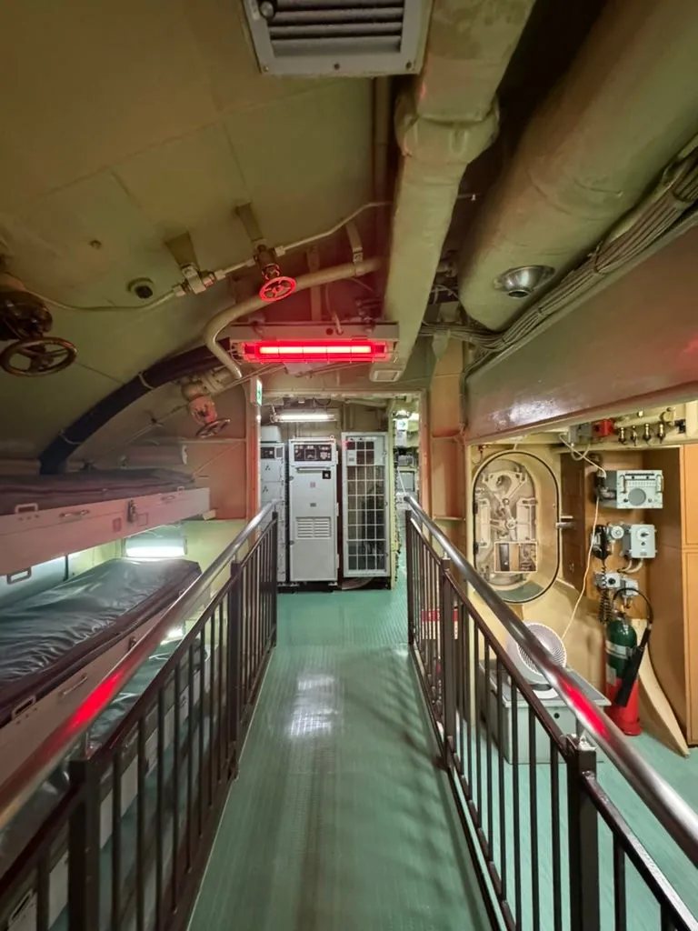 Finally, the most special part is being able to enter the submarine and visit the real engine room, dormitory, captain’s cabin, control room, and use the periscope to view the outside environment.