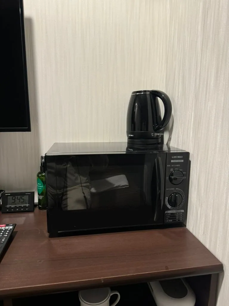 I just realized this hotel doesn’t have a 24-hour front desk, luckily I didn’t come back too late! But the room facilities are well-equipped, including a microwave, electric kettle, and even a glasses cleaner.