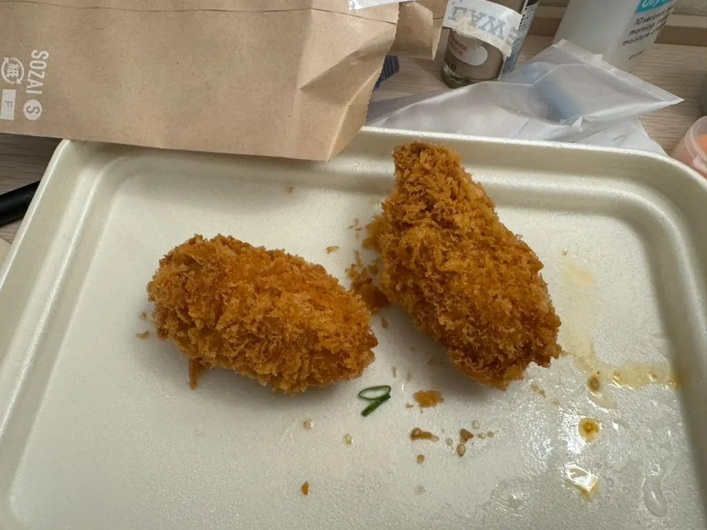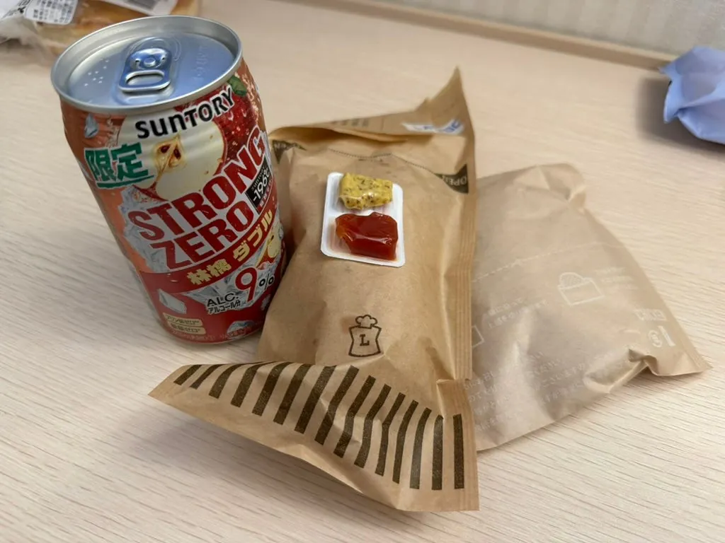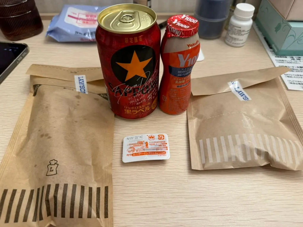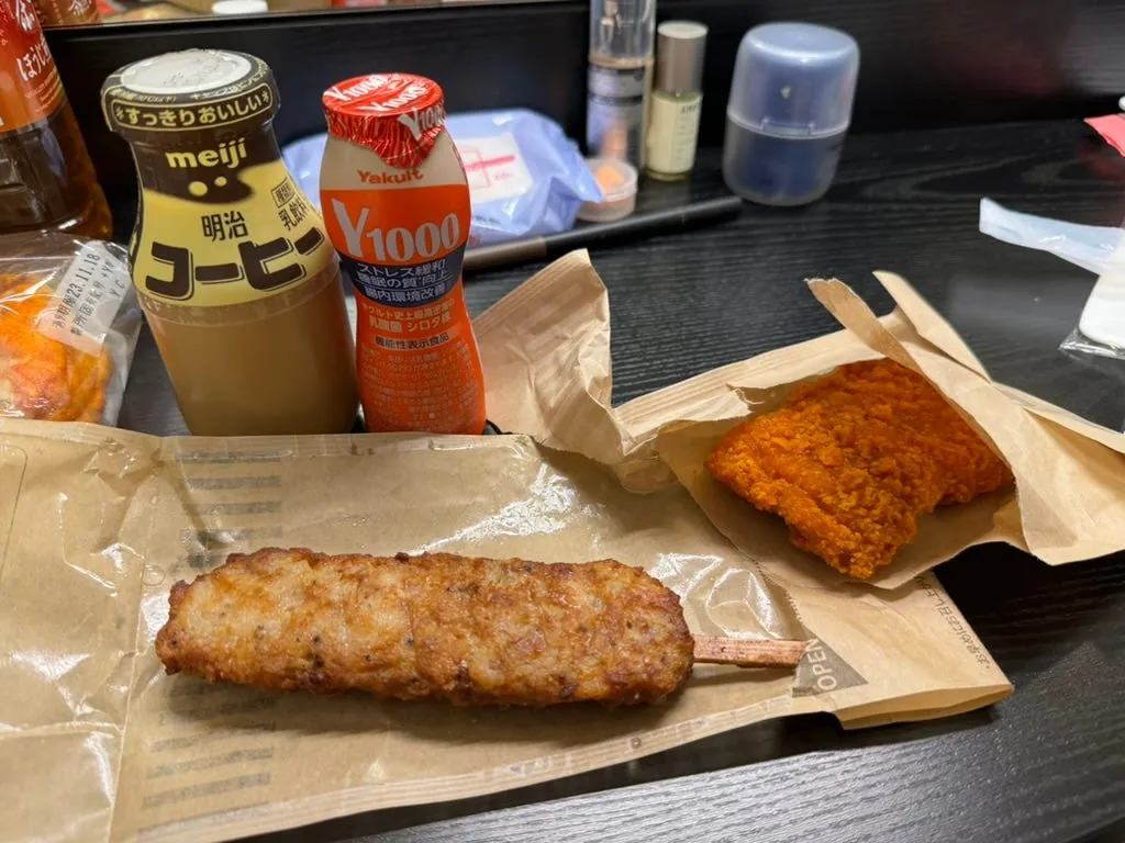 On the last night in Japan, I simply ate convenience store chicken nuggets plus Y1000 and bought an extra bottle of white peach strawberry milk as a midnight snack, then fell into a deep sleep.