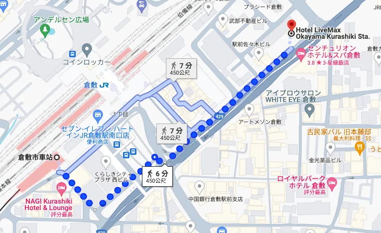 I found Kurashiki because when searching for accommodation in Okayama, I couldn’t find any hotels with acceptable prices. So, I looked for places along the JR line nearby, and since Kurashiki also has shuttle buses to Okayama Airport, I decided to book a hotel near Kurashiki.