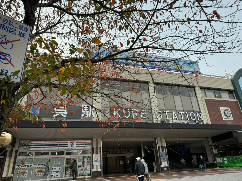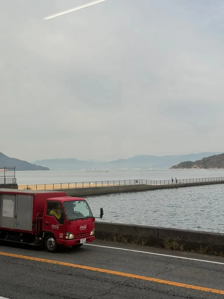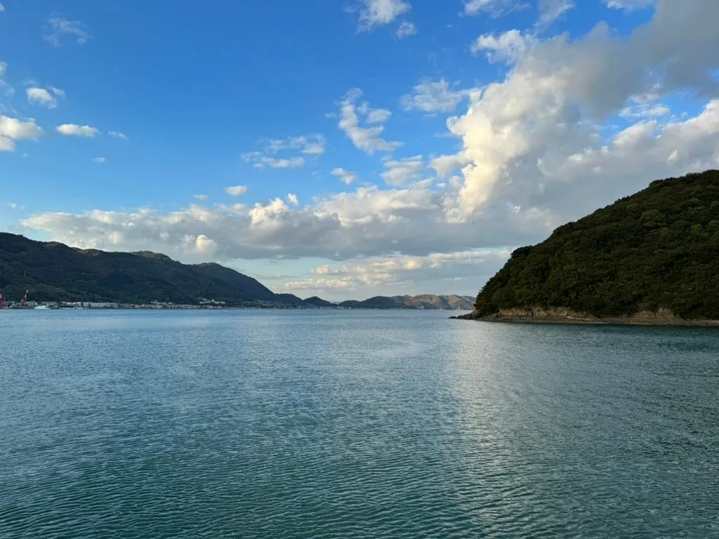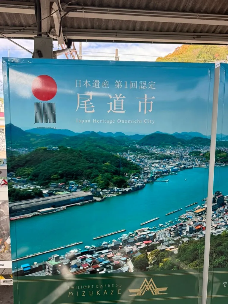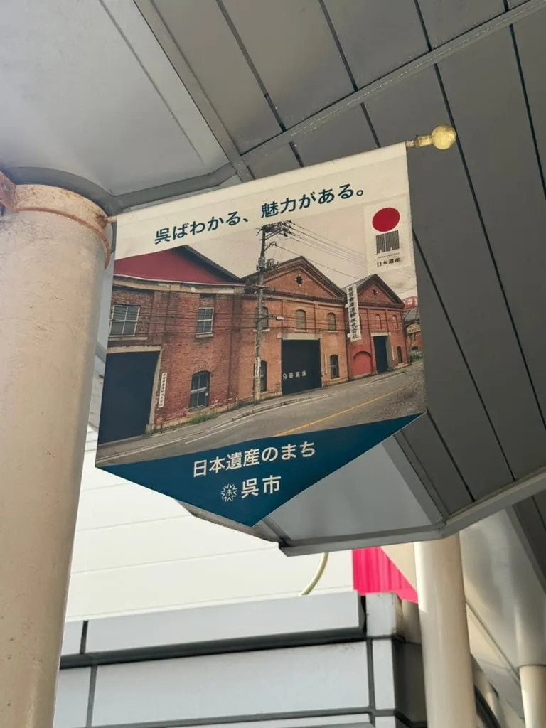 After storing our luggage, we walked back to Hiroshima Station to take the train to Kure City (about 50 minutes). Approaching Kure, looking out the right-side window gave a feeling similar to the train route from Fulong to Yilan, with mountains on the left and the sea on the right, creating a relaxing scenery.