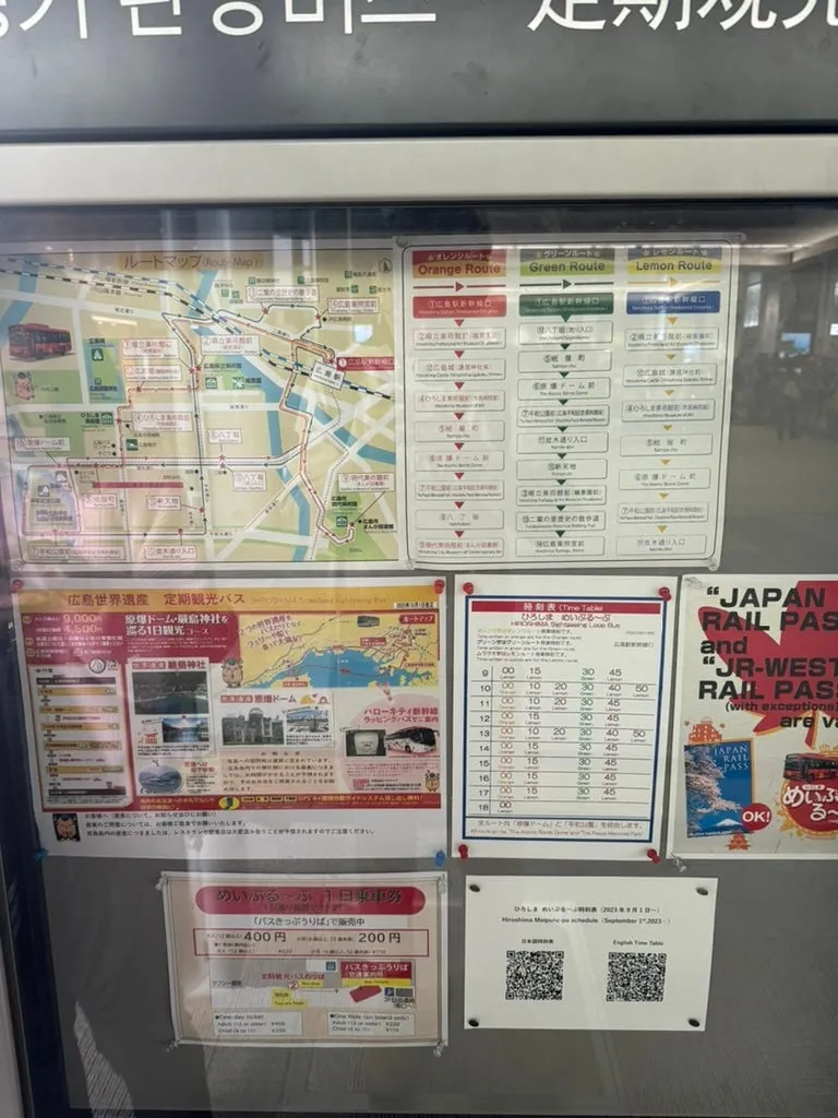 After returning to Hiroshima, the final city tour begins. Right outside Hiroshima Station, there are three sightseeing bus routes available (included in the JR Pass). You can choose based on the direction you want to go.