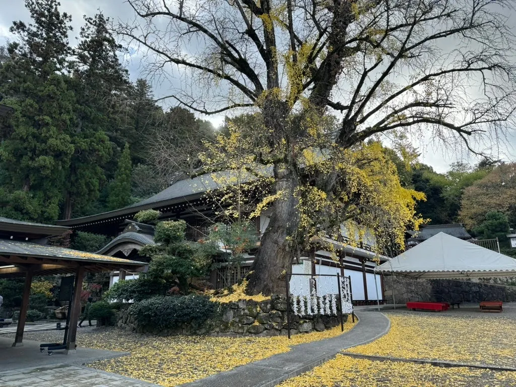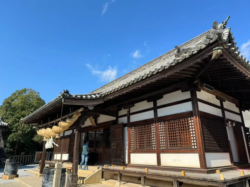 After getting off at the station, head straight to Kibitsu Shrine (about a 30-minute drive). From the station, it’s about a 15-minute walk to reach the shrine. There is a historic cypress corridor, ginkgo trees, and historic buildings, making it a pleasant place for a walk and worship.