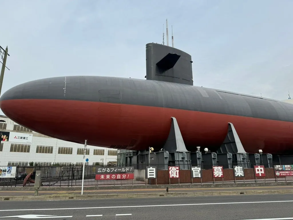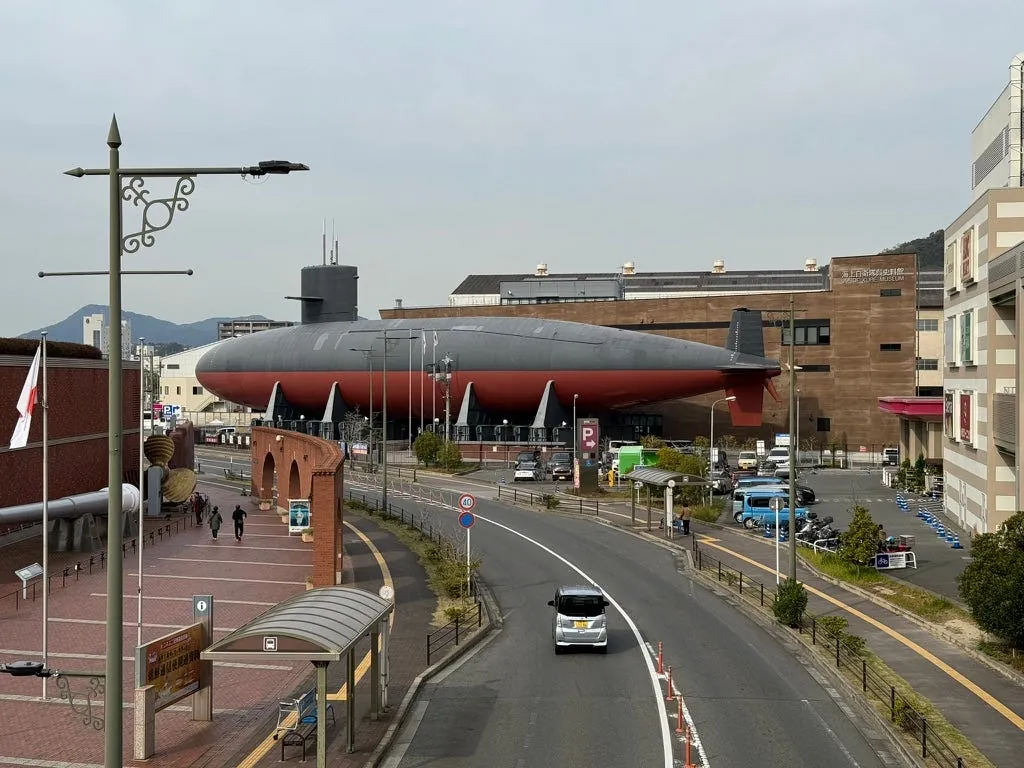 When you reach the end, don’t rush to get off the skybridge. From the skybridge, you can get a great view of the Maritime Self-Defense Force Museum — Submarines.