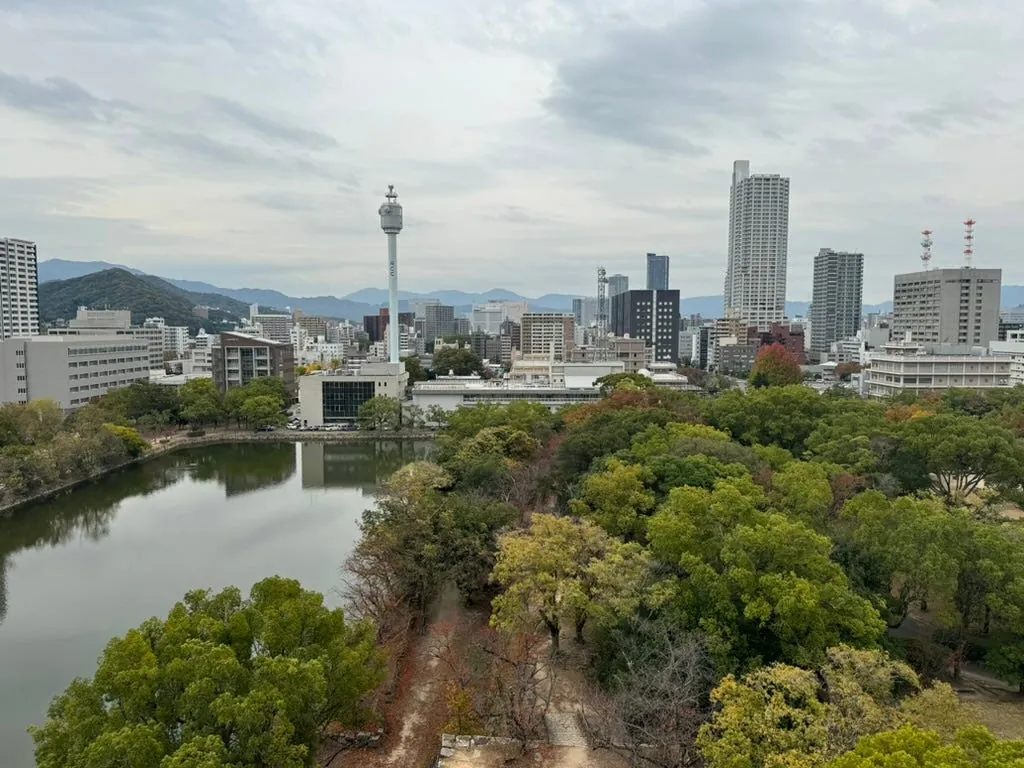 Next stop, a stroll to Hiroshima Castle. The original Hiroshima Castle was destroyed in the atomic bombing. The current castle is a rebuilt version, which looks quite new. It is not very tall, so the main keep does not offer much of a view.