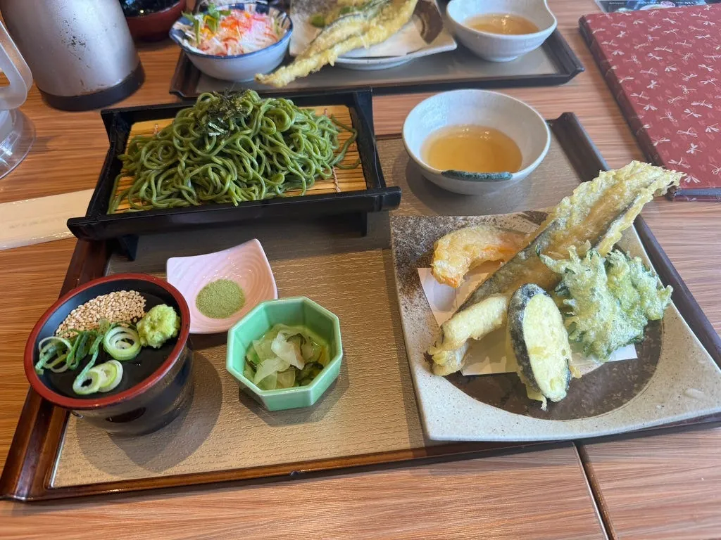 After returning to Okayama Station, I went to the nearby AEON mall to buy some souvenirs and stroll around. I had tempura soba for lunch, then got ready to line up for the airport shuttle back to Okayama Airport.
