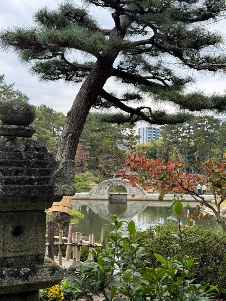 Shukkeien Garden is a charming small courtyard featuring many miniature landscapes, such as maple leaves, small bridges with flowing water, bamboo groves, pine and cypress trees, hills, and more. It’s quite nice to walk around and enjoy the scenery.