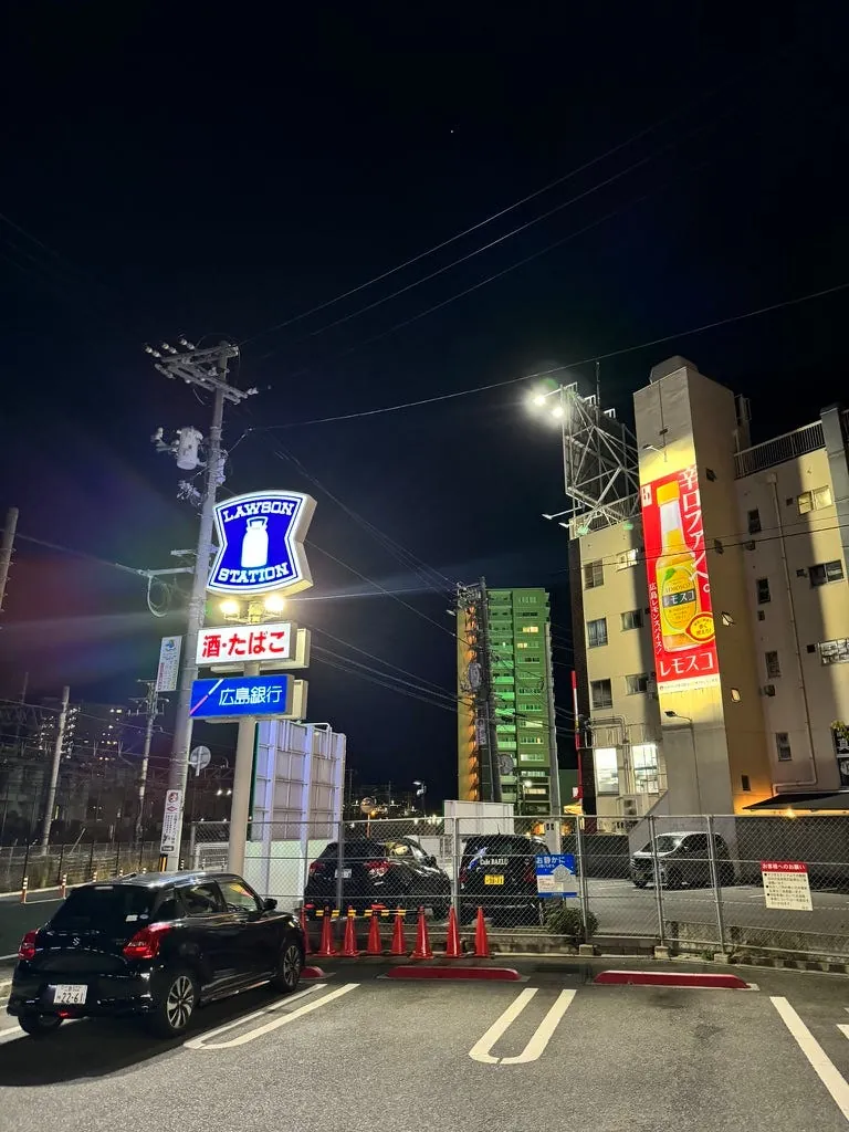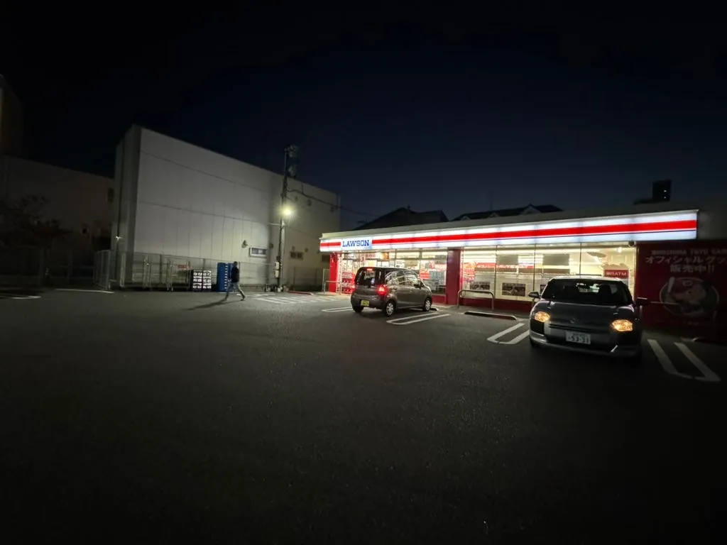 First, check in at the hotel and drop off your luggage before going out to find food. When there are no baseball games, this street is quite quiet. Right across is the railway, and there aren’t many shops on the road, but luckily there is a large Lawson convenience store.