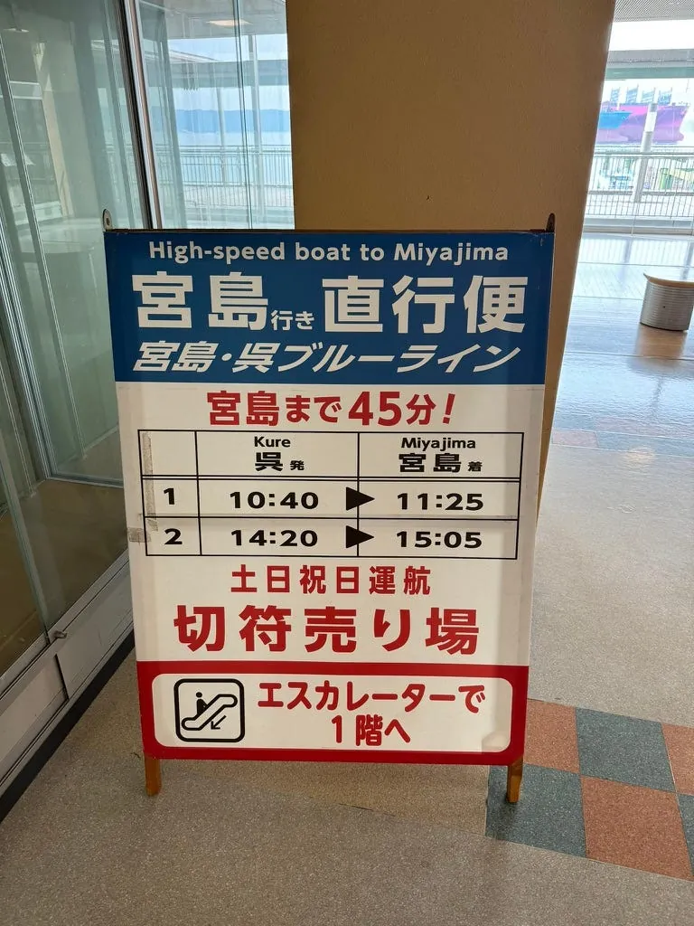 For friends planning to visit Kure City and Hiroshima, here is a suggested itinerary. From Kure City, you can take a boat to Miyajima and then return to Hiroshima. I originally planned to take the boat back to Hiroshima, but missed the timing, so I gave up on it this time.
