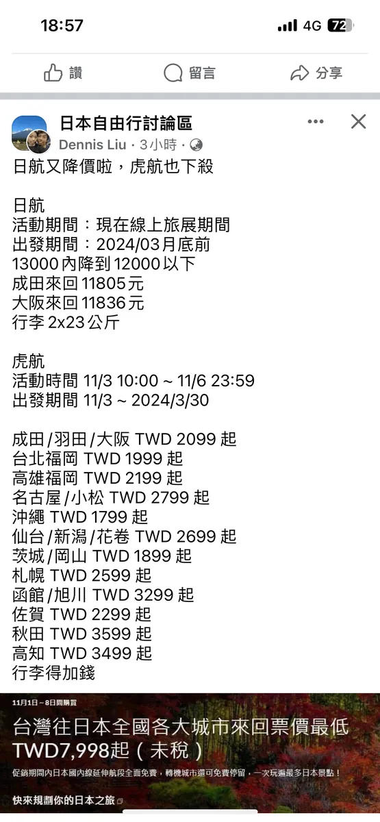 10/31 While bored scrolling through Facebook, I happened to see someone posting about airline discount promotions in the “Japan Free Travel Discussion Group.” I noticed that Tigerair had a sale from 11/3 10:00 to 11/6 23:59. Fortunately, I took a go-with-the-flow attitude: if I got the discount, great; if not, no worries.