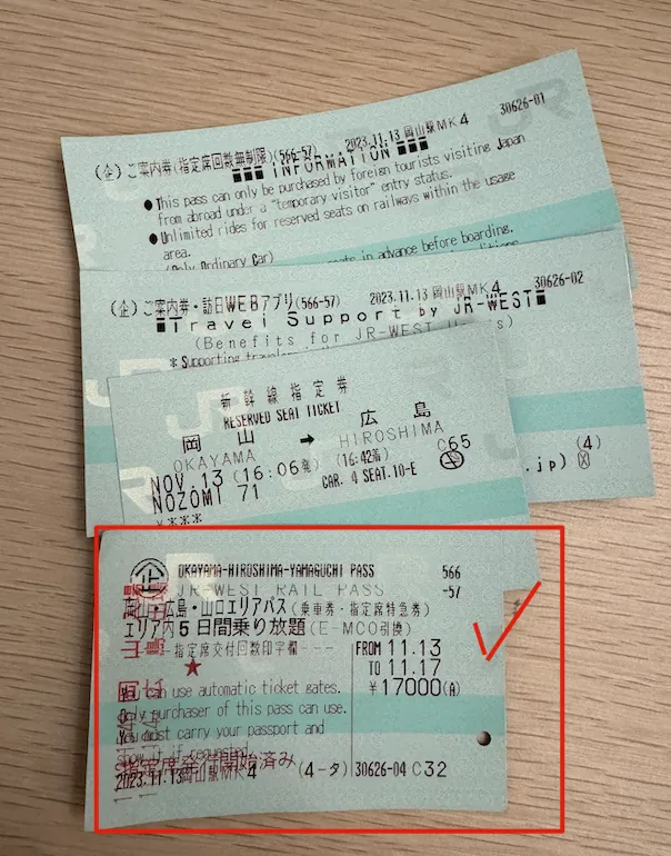 JR Pass Okayama & Hiroshima & Yamaguchi Area Rail Pass (¥ 17,000, just before the price increase at the end of October 2023.)