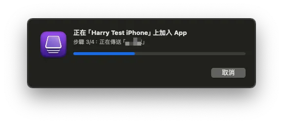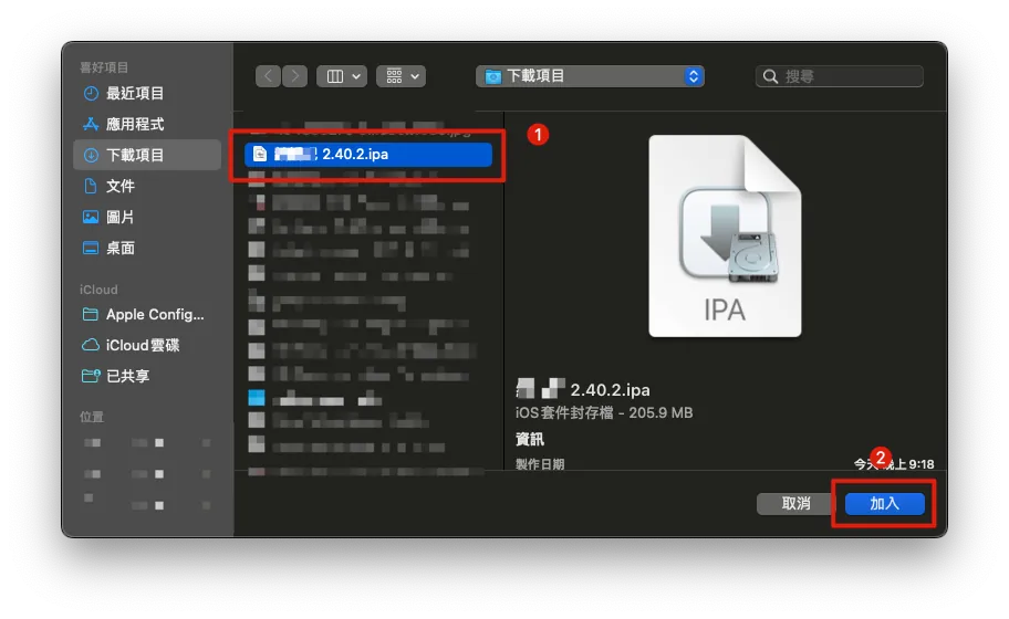 You can find the target App .ipa file that has been downloaded and is ready to be installed: