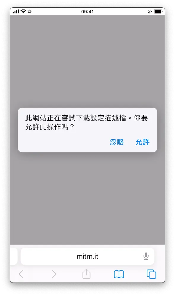 Open Safari on your phone and enter: http://mitm.it/