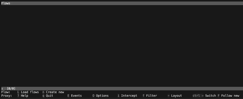 Seeing this screen means the mitmproxy service has started. There is no traffic currently, so it is empty. Stay on this screen and do not close the Terminal.