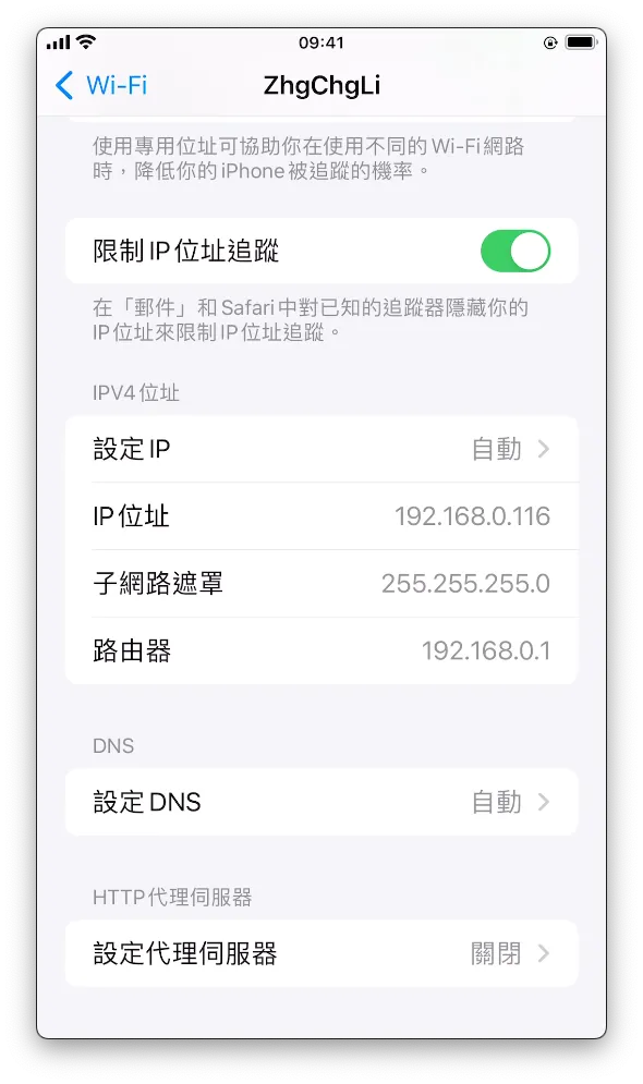 Go back to the phone’s WiFi settings and tap the “i” to enter detailed settings. Find the “Configure Proxy” option at the bottom: