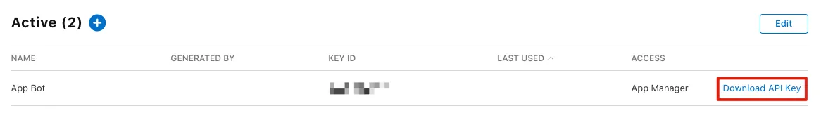 Click “Download API Key” on the right to download and save your “AuthKey_XXX.p8” key.