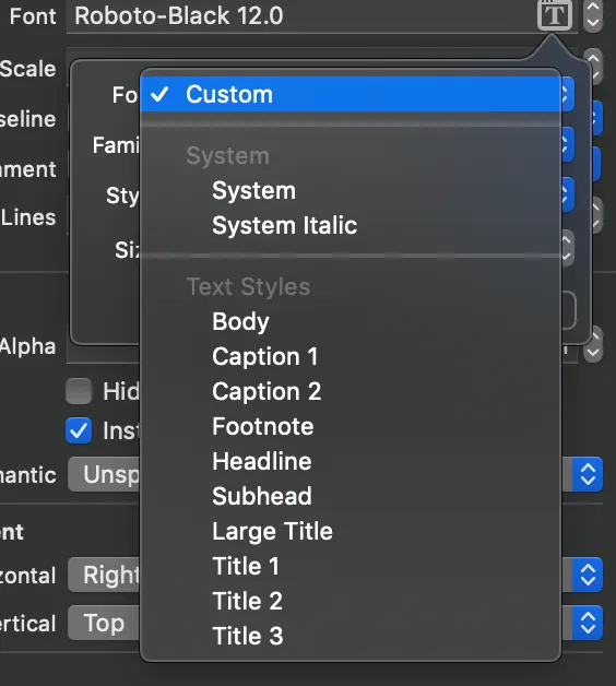 You can directly apply the system’s Text Styles or use Custom (but I tested Custom and couldn’t set the font size); so I use System to customize the font size of each display Label.
