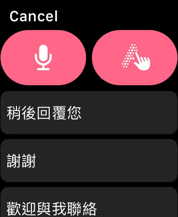 self.presentTextInputController(withSuggestions: ["Reply later","Thank you","Feel free to contact me","Okay","OK!"], allowedInputMode: WKTextInputMode.plain) { (results) in