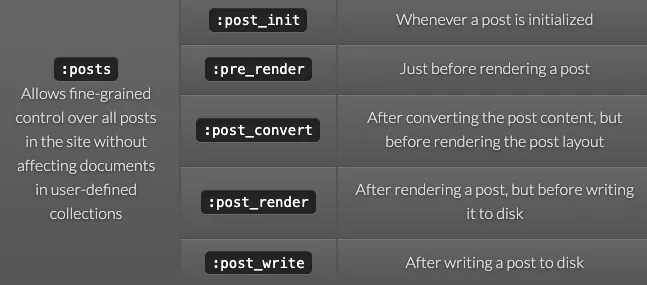 The second method is to use the Hook method in Plugin to inject custom content during Jekyll’s static content generation phase.
