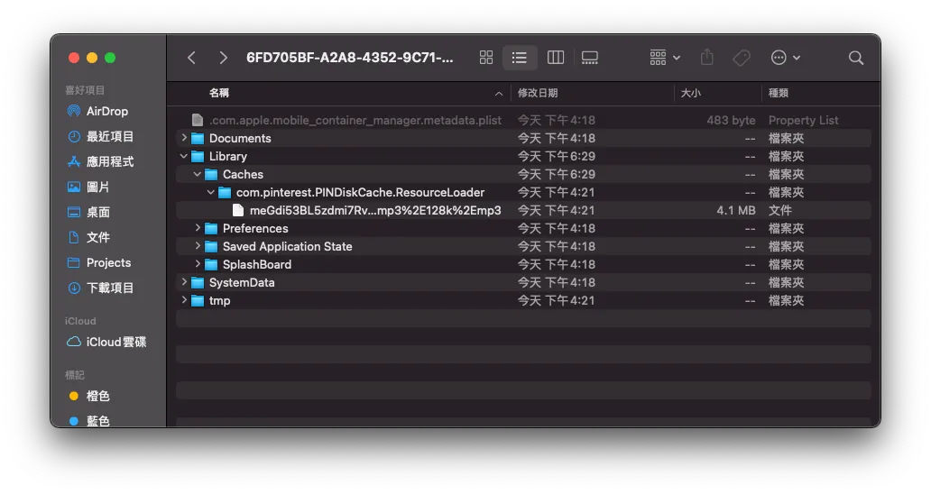 In Library -> Caches -> com.pinterest.PINDiskCache.ResourceLoader is the Resource Loader Cache directory we created.