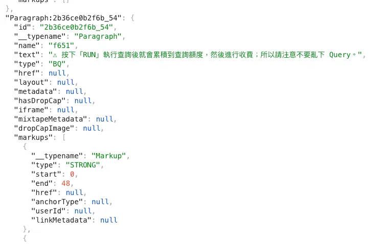 What we need to do is the same: parse this JSON, match the Type with Markdown styles, and assemble the Markdown format.