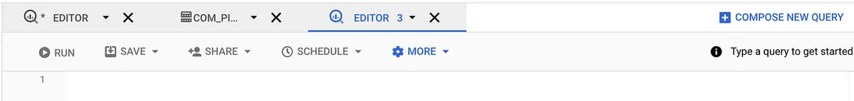 Or directly click “COMPOSE NEW QUERY” to open a blank Query Editor: