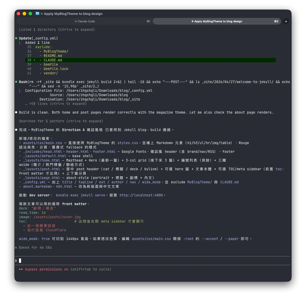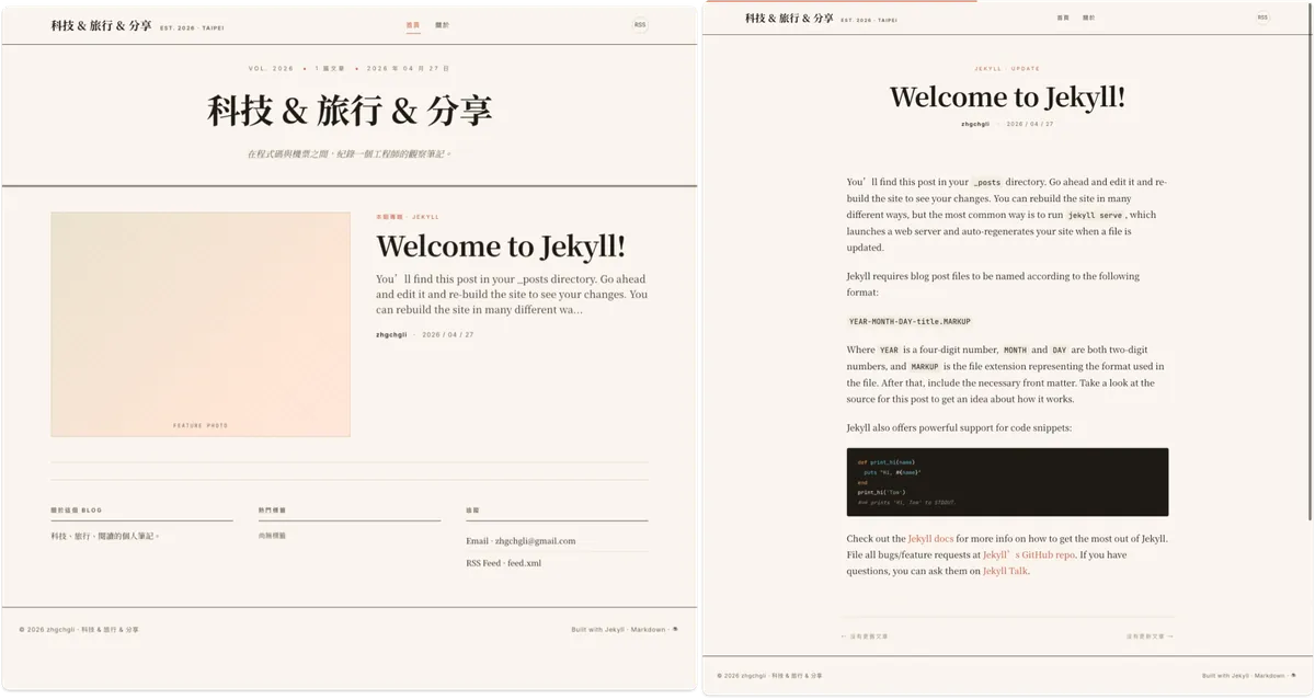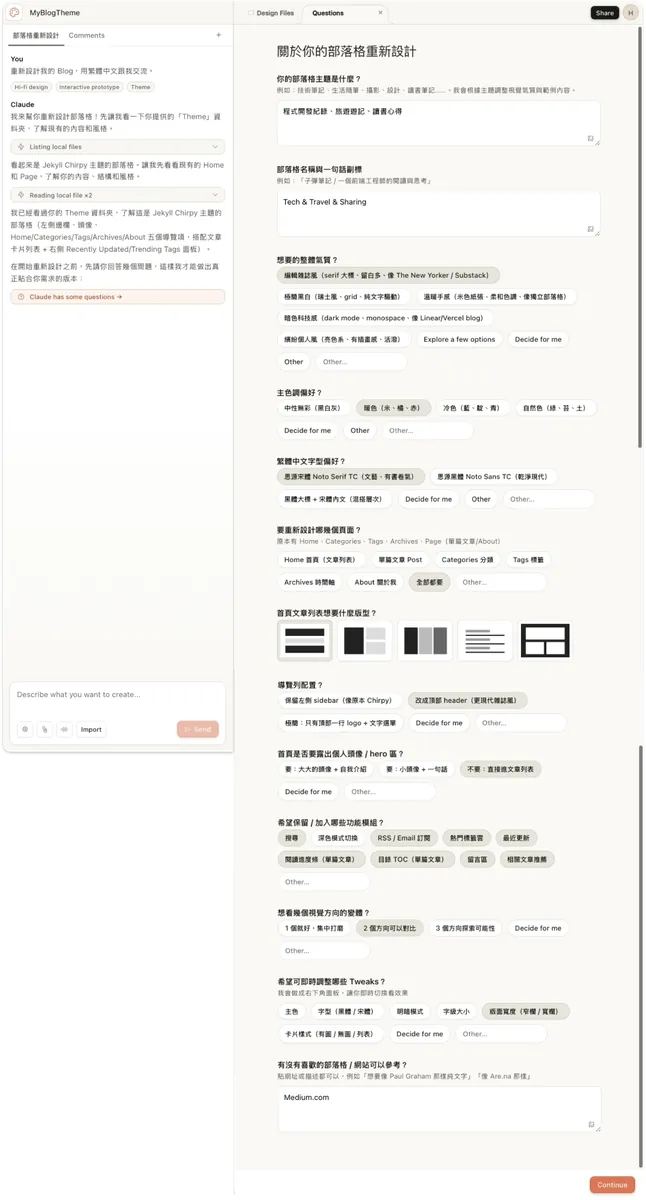 Spent a weekend using Claude Design to create my preferred Blog style and features, then implemented and applied them back to my Jekyll Blog with Claude Code, perfectly replacing the 5-year-old Chirpy Theme interface with my ideal personal Blog style.