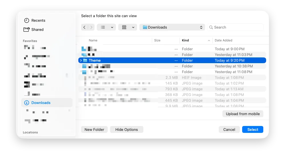 Select the Theme folder you just organized: