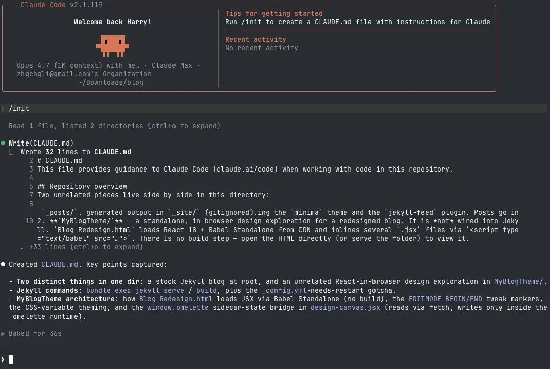 Remember to run /init once in the Jekyll blog directory to let the AI know it is a Jekyll Blog structure.