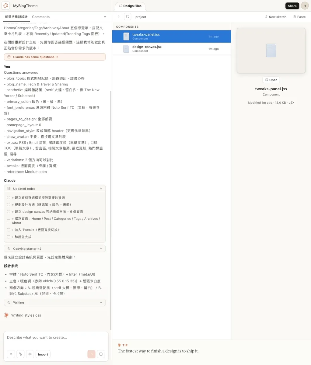 A Weekend Afternoon + Claude Design + Claude Code = Create a Blog with Your Own Style