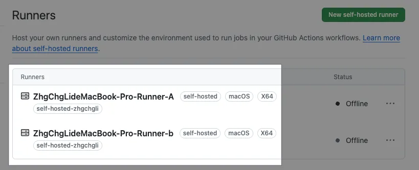 This article uses a Public Repo, so it directly uses GitHub Hosted macOS Runners. However, in real work, our Repos are always Private. Using GitHub Hosted Runners is very expensive and not cost-effective (about the price of a Mac Mini per month, which you can set up in the office for unlimited use). Each machine can run multiple Runners concurrently depending on its performance to handle tasks.