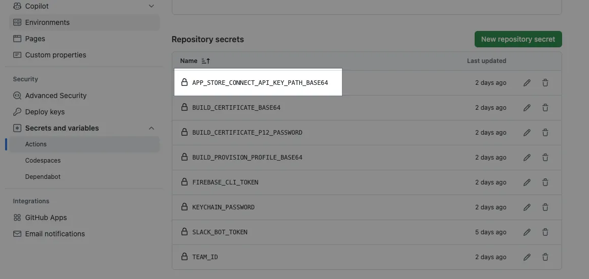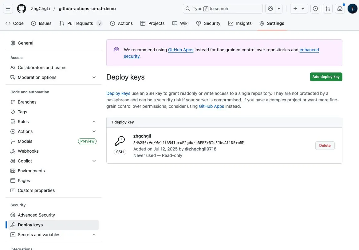 Step 3. Set SSH Private Key to Secrets in the Action’s Repo