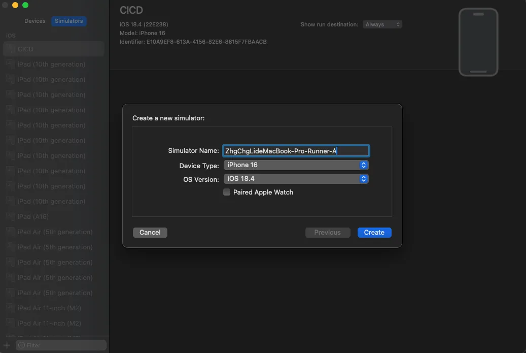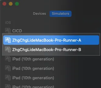 The issue of multiple Runners on the same machine has mostly been resolved in the Actions above, such as changing all shared dependency directories to local directories. Another problem encountered during testing that needs to be addressed is the simulator conflict: “When two test Jobs are run by two Runners on the same machine simultaneously, specifying the same simulator causes interference and test failures.”