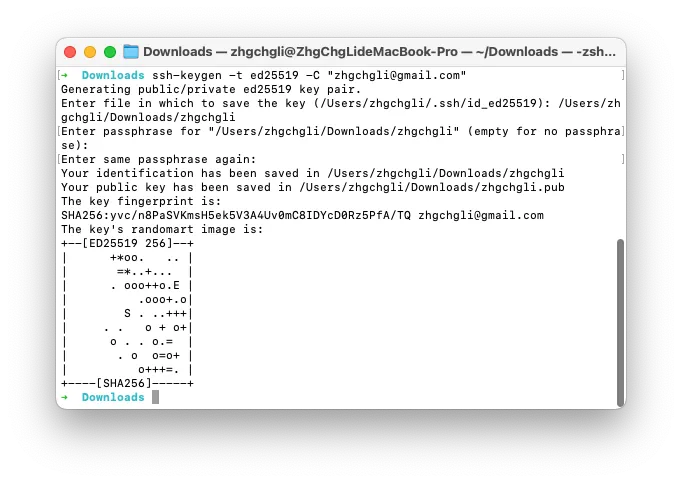 Enter file in which to save the key (/Users/zhgchgli/.ssh/id_ed25519): /Users/zhgchgli/Downloads/zhgchgli